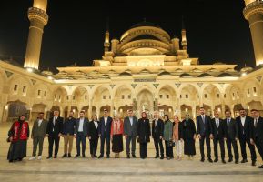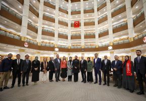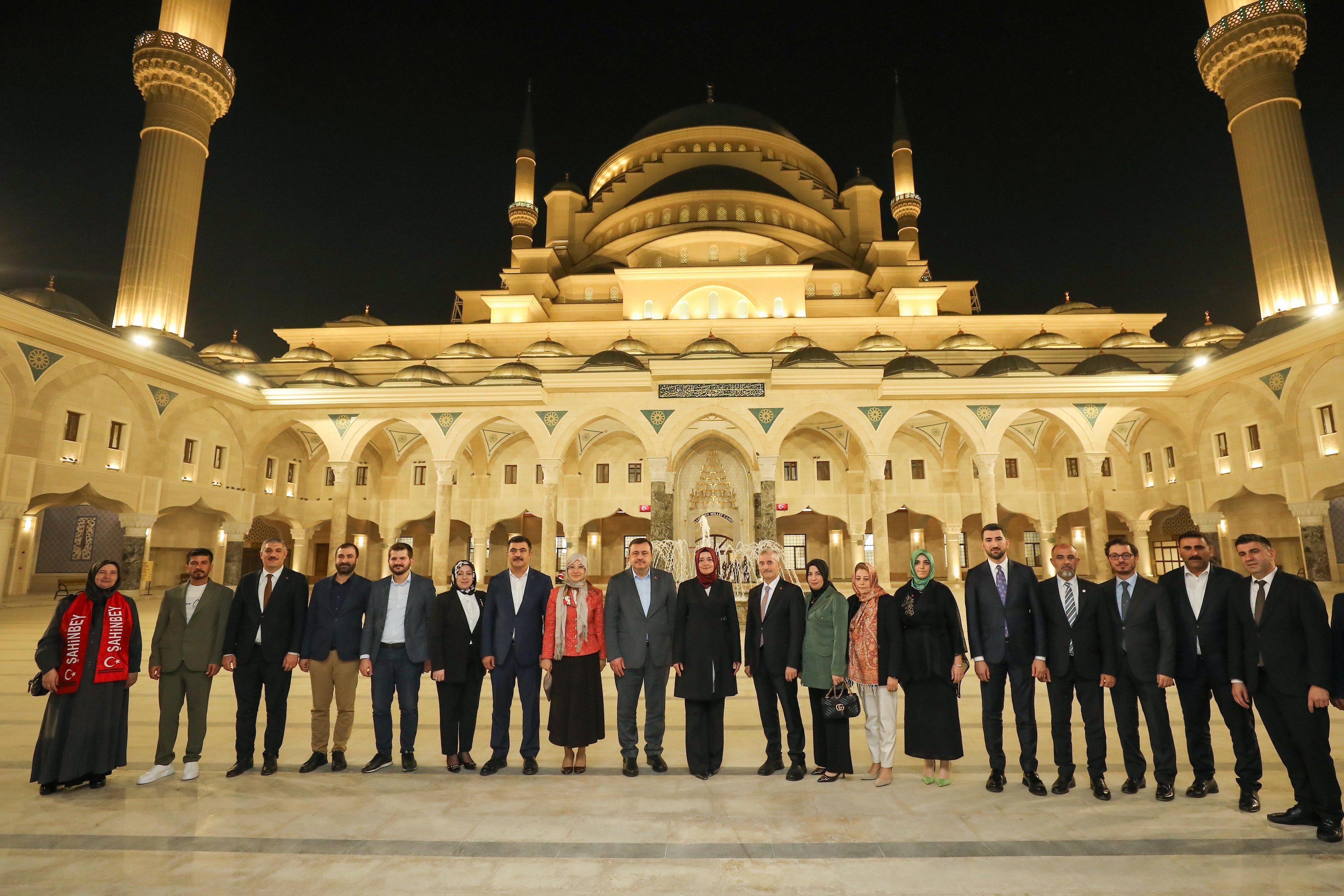 Heyet ardından bölgenin en önemli manevi eserlerinden biri olan Şahinbey Millet Camii ve Külliyesi’ni ziyaret etti. Caminin mimari özellikleri, külliye bölümleri ve yürütülen sosyal-dini hizmetler hakkında bilgiler alan Dr. Betül Sayan Kaya, eserin kente büyük değer kattığını ifade etti.