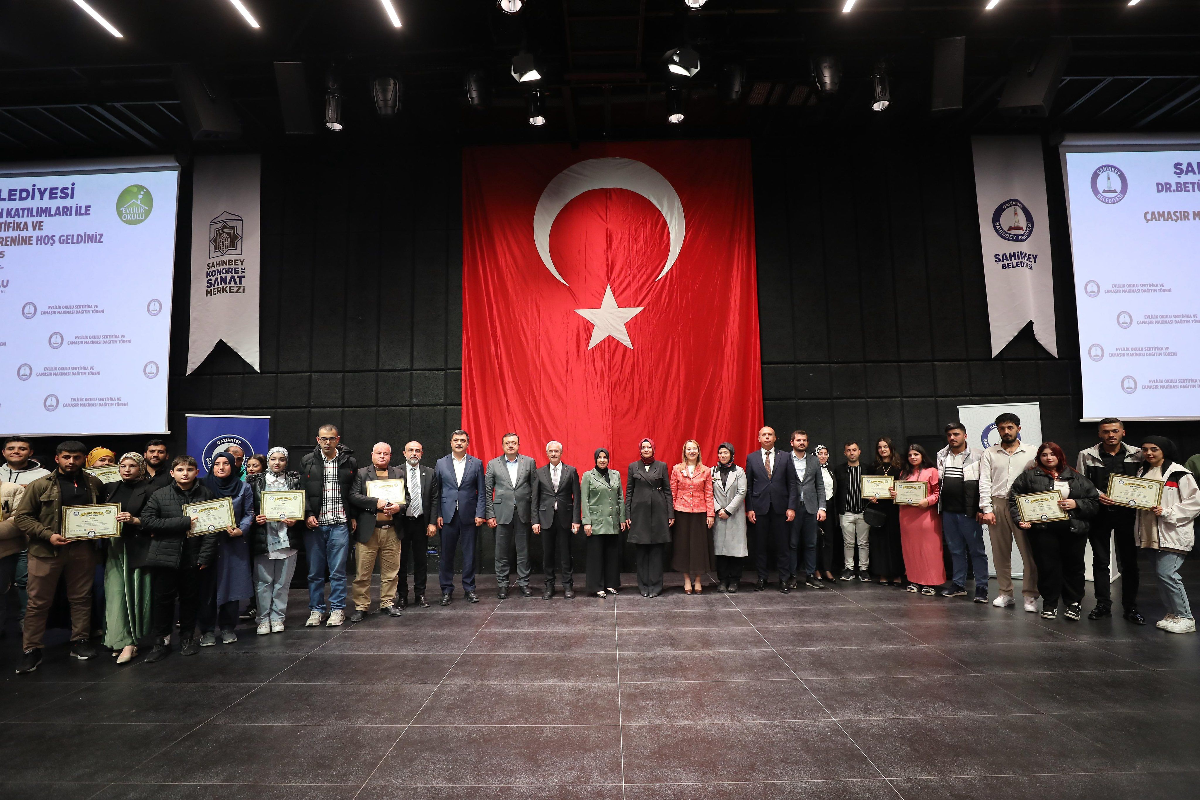 Başkanımız Mehmet Tahmazoğlu’nun göreve başladığında ilk hayata geçirdiği projelerden olan Evlilik Okulu ile devam etti. Türkiye’nin en kapsamlı aile eğitim projelerinden biri olarak gösterilen programa AK Parti Genel Başkan Yardımcısı ve önceki dönem Aile ve Sosyal Politikalar Bakanı Dr. Betül Sayan Kaya, AK Parti Gaziantep Milletvekili Derya Bakbak, il ve ilçe yönetimiyle birlikte katıldı. Başkan Mehmet Tahmazoğlu’nun öncülüğünde yürütülen Evlilik Okulu Projesi kapsamında şimdiye kadar 60 binden fazla çiftin eğitim aldığı, yeni evlenecek çiftlere çamaşır makinasının yansıra nakdi destekler sağlandığı aktarıldı.