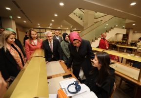AK Parti Genel Başkan Yardımcısı Dr. Betül Sayan Kaya ve beraberindeki heyet, Şahinbey Belediyesi tarafından hizmete sunulan Şahinbey Millet Kütüphanesi’ni ziyaret ederek öğrencilerle sohbet etti. Modern mimarisi, geniş kitap kapasitesi ve gençlere yönelik çalışma alanlarıyla dikkat çeken devasa kütüphane hakkında Başkan Mehmet Tahmazoğlu, heyete detaylı bilgiler verdi.